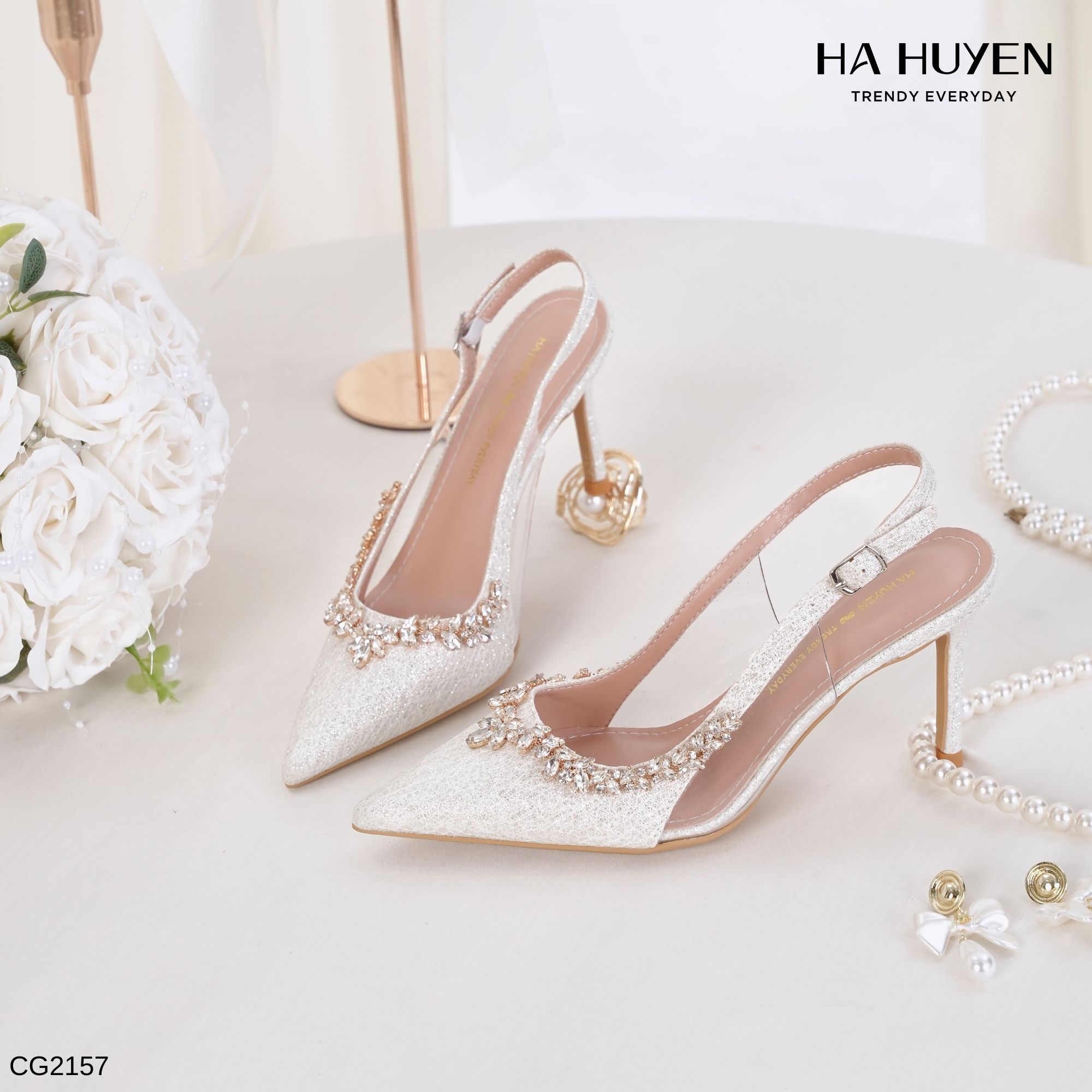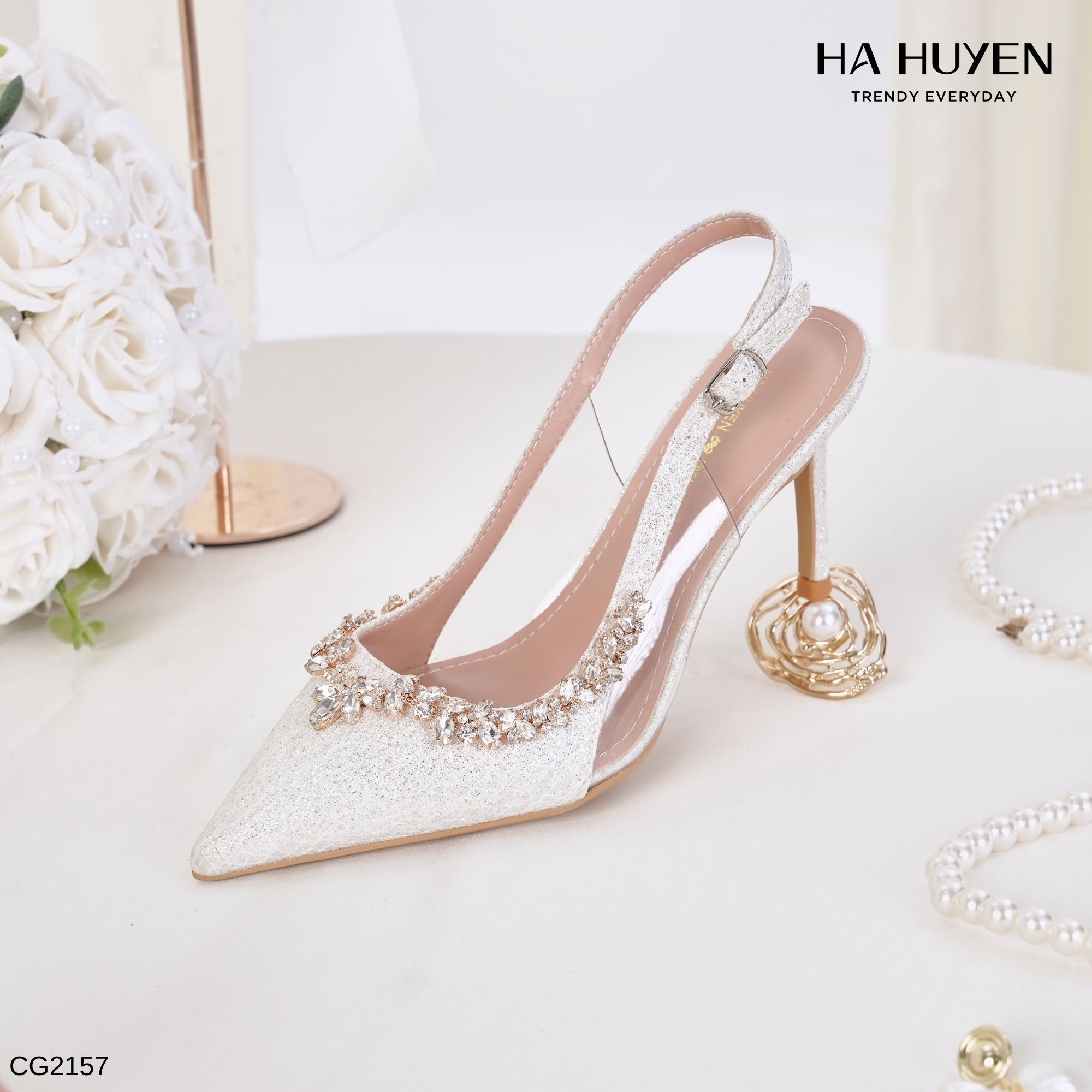Cao gót nhũ đính đá viền 9cm – CG2157